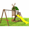 Комплекс изготовлен из карельской сосны 1 сорта. Природное сырье не боится капризов погоды в наших широтах. Древесина не рассыхается, не ломается и не гниет.